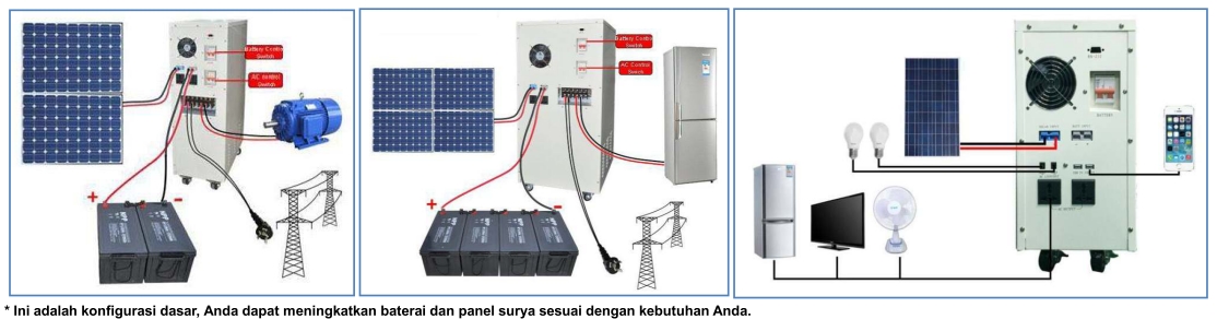 * Sistem ini dapat menyediakan listrik yang dihasilkan oleh energi matahari untuk beban langsung.