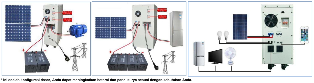 * Sistem ini dapat menyediakan listrik yang dihasilkan oleh energi matahari untuk beban langsung.